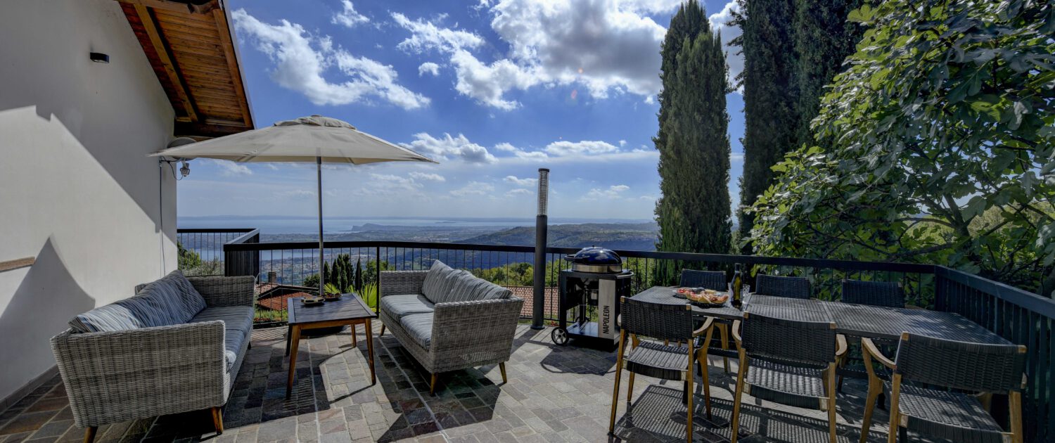 Über dem südlichen Gardasee liegt der Villenort Mezzane in einzigartiger Panoramalage inmitten eines Naturschutzgebietes. Genießen Sie den spektakulären Blick über die blaue Weite des „Lungo Lago“ – fernab von Trubel und Hektik. Die Villa Rondine ist seit 2017 als Ferienhaus buchbar. Im Jahr 2022 wurde das gesamte haus umfassend saniert. Neue Bäder und eine großzügige Panoramaverglasung lassen die Zeit in der Villa Rondine, auch bei nicht optimalem Wetter zum Erlebnis werden. Verschiedene Terrassen erlauben immer wieder neue Perspektiven: Sirmione, Garda und Bardolino liegen im Blick, am Abend entzünden sich die Lichter wie Perlenketten an den Uferpromenaden. Im Wohnzimmer steht ein schöner Kamin zur Verfügung um im Frühjahr oder Herbst eine heimelige Atmosphäre zu zaubern.